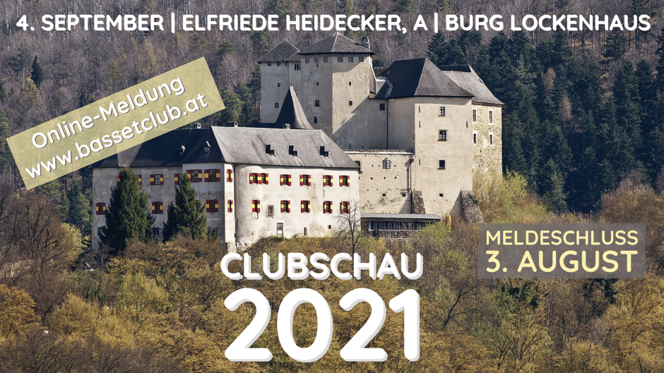 Die 48. Clubschau des Österreichischen Basset- und Laufhunde Clubs findet am 4. September 2021 auf Burg Lockenhaus im Burgenland statt. Als Richterin dürfen wir Frau Elfriede Heidecker (A) begrüßen.